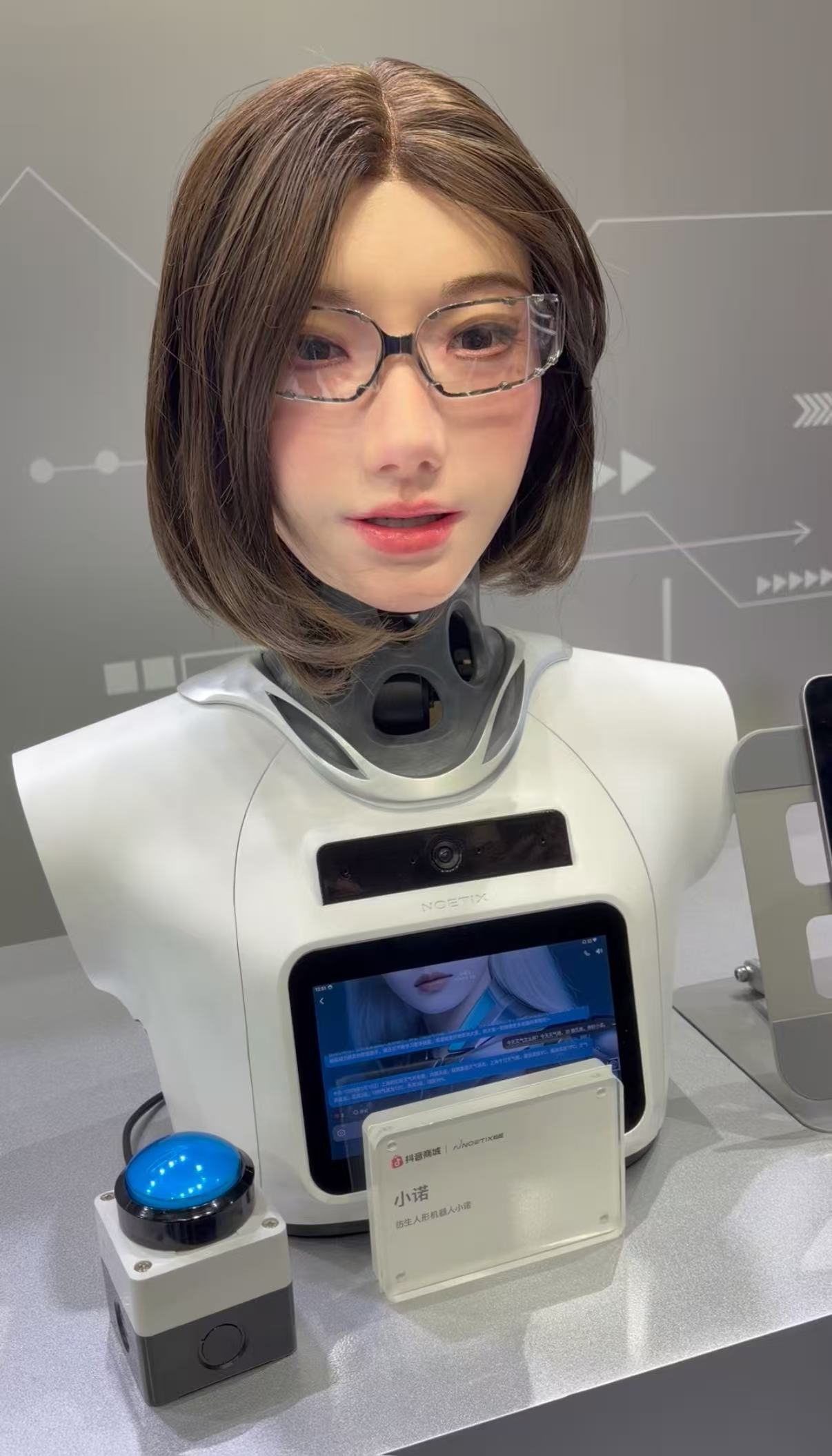 (抖音商城在现场展示的仿生人形机器人小诺。)