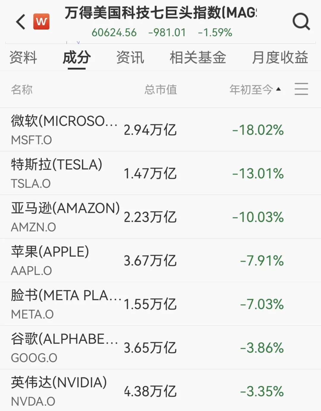 截至周五美股收盘,美股科技七巨头股价全部收跌。据Wind,谷歌、英伟达、Meta、苹果、亚马逊、特斯拉及微软,年内股价全部告负。其中微软表现最为落后,年内累计跌幅超过18%,市场认为其受到新兴AI工具可能颠覆软件行业这一担忧的直接冲击。