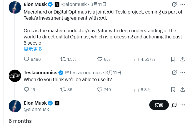 马斯克在周四早些时候确认 , “数字擎天柱”——特斯拉版的“龙虾”将在6个月左右准备好供用户体验 。