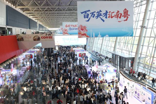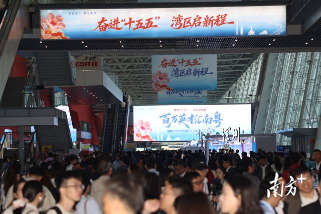 上午8时许,广交会展馆登录大厅外已是人头攒动。来自五湖四海的青年学子背着行囊、手持简历,在入场通道前排起蜿蜒长龙。