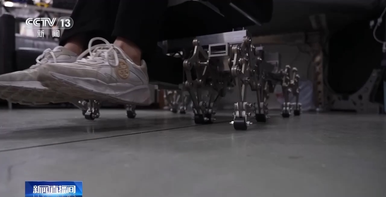 一进入周明轩位于苏州的工作室,就像进入了赛博朋克风格的梦核工厂,墙上挂着机械骨骼蝴蝶风筝、具身机器人紧紧“盯着”记者的一举一动、硬核机械尾巴灵活摇摆,像极了科幻片中的未来场景。记者刚想拉一把椅子坐下,没想到椅子自己走起了路。