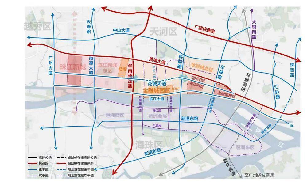 规划的巧思在于“联”。交通上,广佛东环城际、4号线、5号线、11号线等轨道线如绣针穿引,黄埔大道、临江大道、华南快速、科韵路、车陂路等路网骨架依次铺展;空间上,珠江高质量发展带成为串联三地的产业走廊;机制上,“金融城片区顾问总师”“琶洲地区城市总设计师”等顾问制度,为每一栋建筑把关。这是一种规划引领的精密协同,让三个功能片区从“物理相邻”走向“化学相融”。