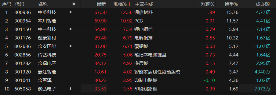 3月16日,早盘PCB概念盘中回暖,中英科技、本川智能涨超10%,中一科技、逸豪新材、金安国纪等跟涨。