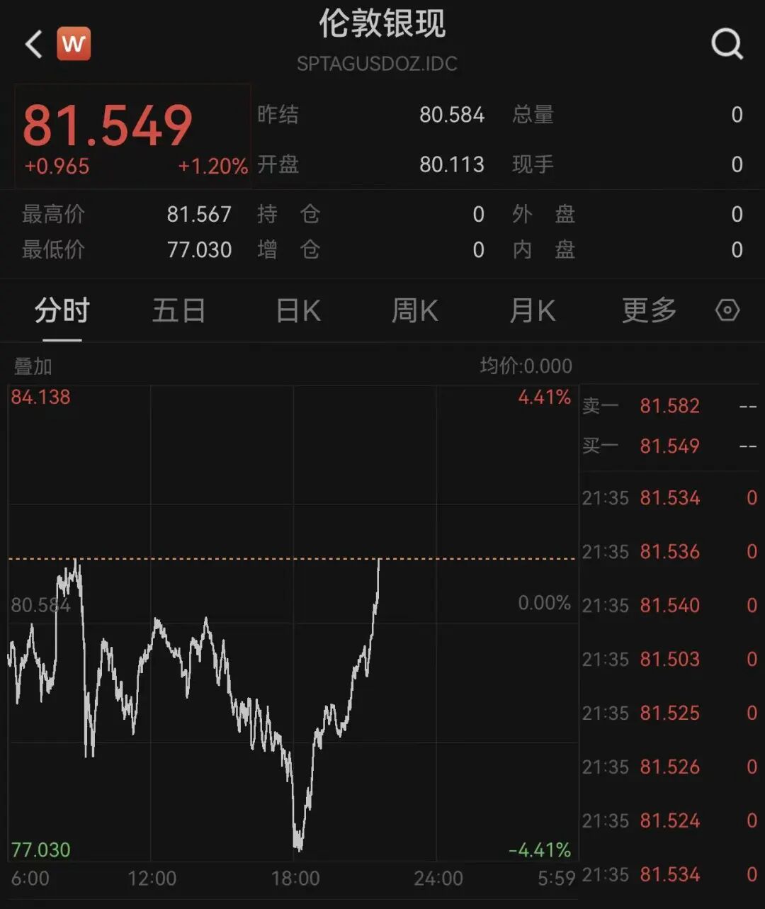 大宗商品方面, 国际金银日内跳水后大涨,走出深“V”。 现货白银一度跌超4%,现涨1.2%,报81.54美元/盎司,现货黄金一度跌超1%,现涨0.31%,报5033.61美元/盎司。