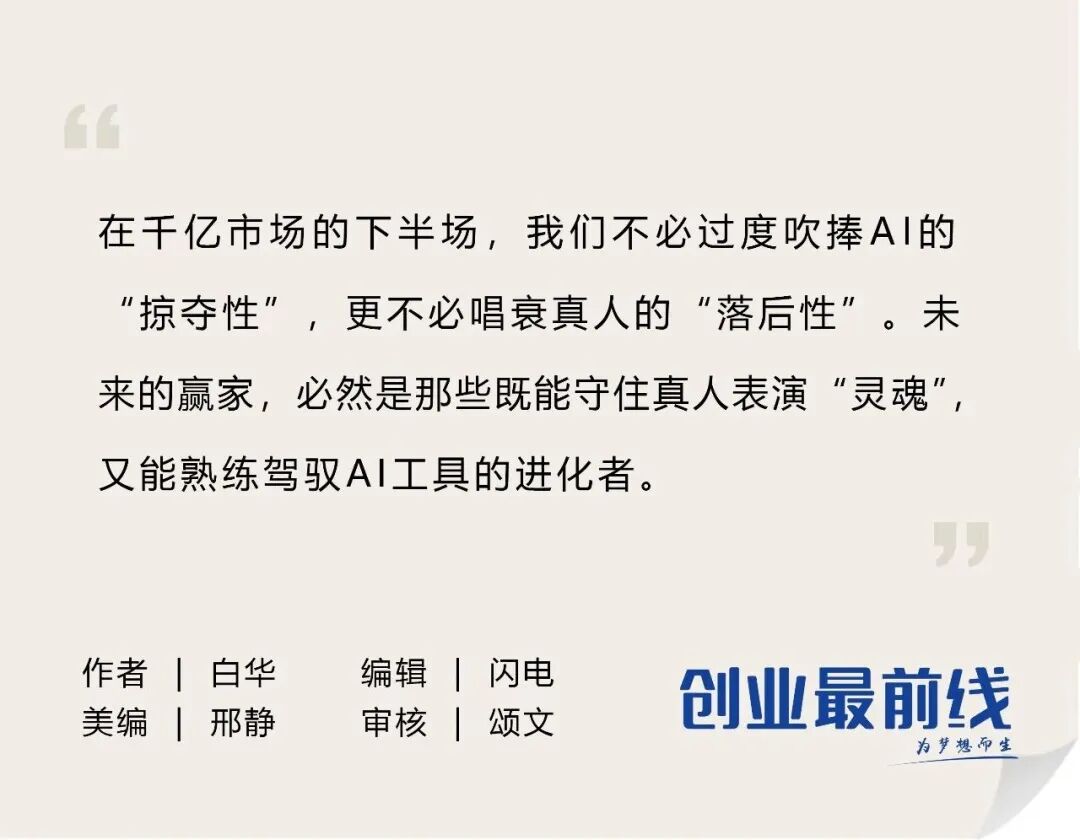 在千亿市场的下半场,我们不必过度吹捧AI的“掠夺性”,更不必唱衰真人的“落后性”。正如夏烈所言,大家是一个“短剧共同体”。未来的赢家,必然是那些既能守住真人表演“灵魂”,又能熟练驾驭AI工具的进化者。