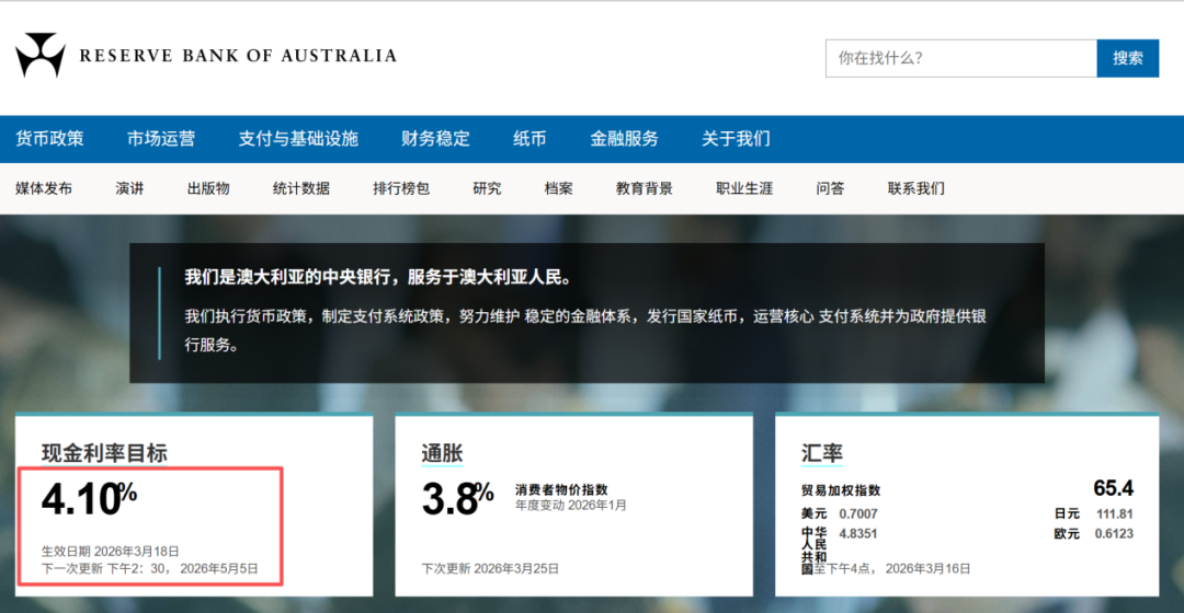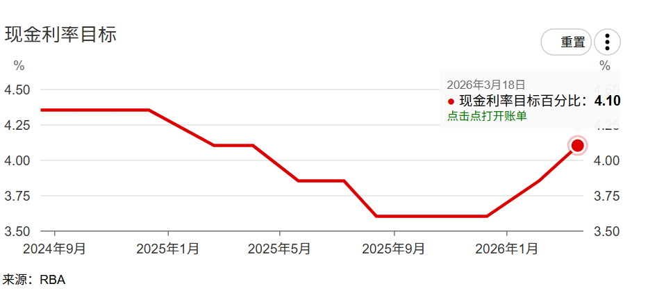 3月17日,澳洲联储(RBA)官网显示,其现金利率目标上调25个基点至4.1%。