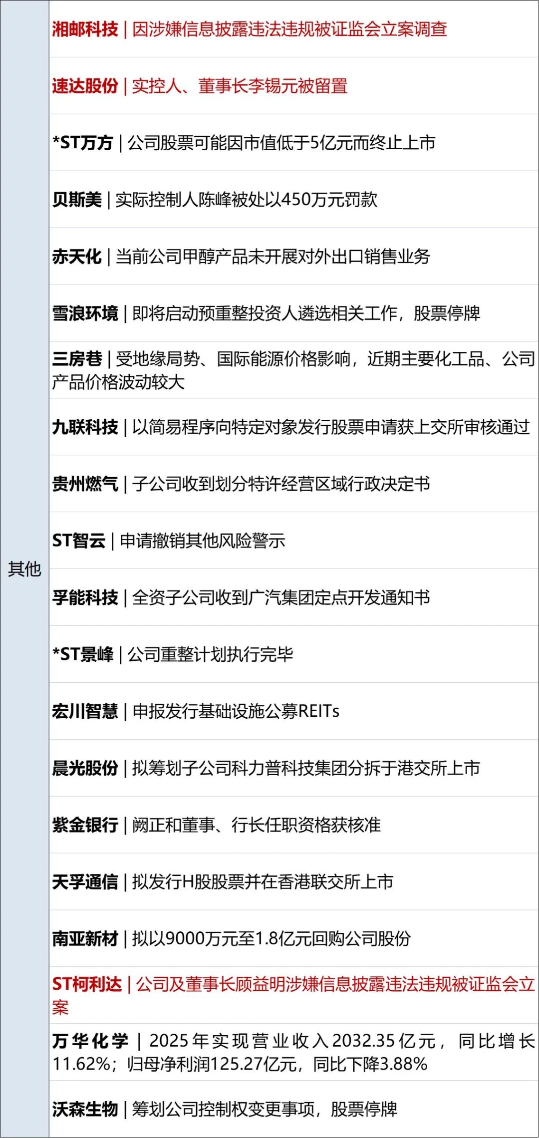 零跑汽车(HK9863,股价44.56港元,市值634亿港元): 3月16日,零跑汽车公告,2025年收入为647.3亿元,上年同期321.6亿元。2025年本公司权益持有人应占净利润为5.4亿元,首次实现全年度盈利,成为中国造车新势力中第二家实现年度盈利的企业;上年同期亏损28.2亿元。2025年,零跑汽车交付新车596555台,连续两年实现销量翻倍增长,位居中国新势力品牌销量榜首。