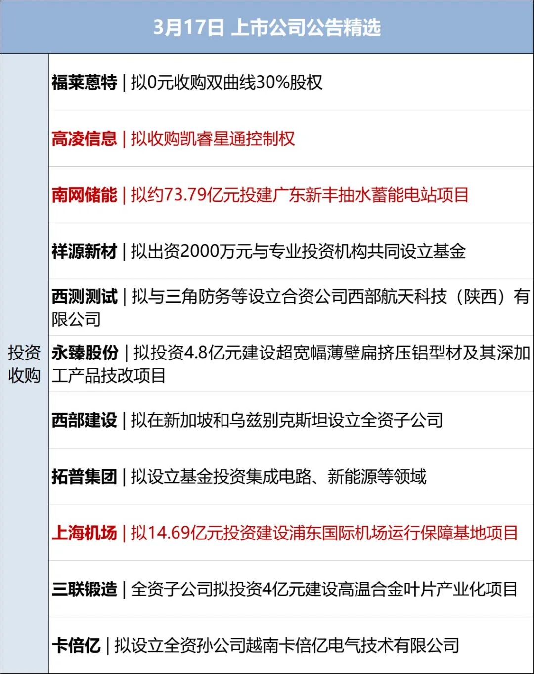 腾讯控股(HK00700,股价558.5港元,市值50859亿港元): 3月16日,腾讯宣布,旗下AI原生应用元宝的AI社交功能,“元宝派”支持接入OpenClaw。对于已有本地或云端OpenClaw的用户,可以通过运行命令、手动配置和扫码关联三种方式,将自己已有的OpenClaw与元宝派关联。同时,元宝派还将于近期上线限量免费“一键创建”OpenClaw活动,无需复杂的云端配置或插件安装,用户在元宝派内即可免费一键创建并启用专属Bot。