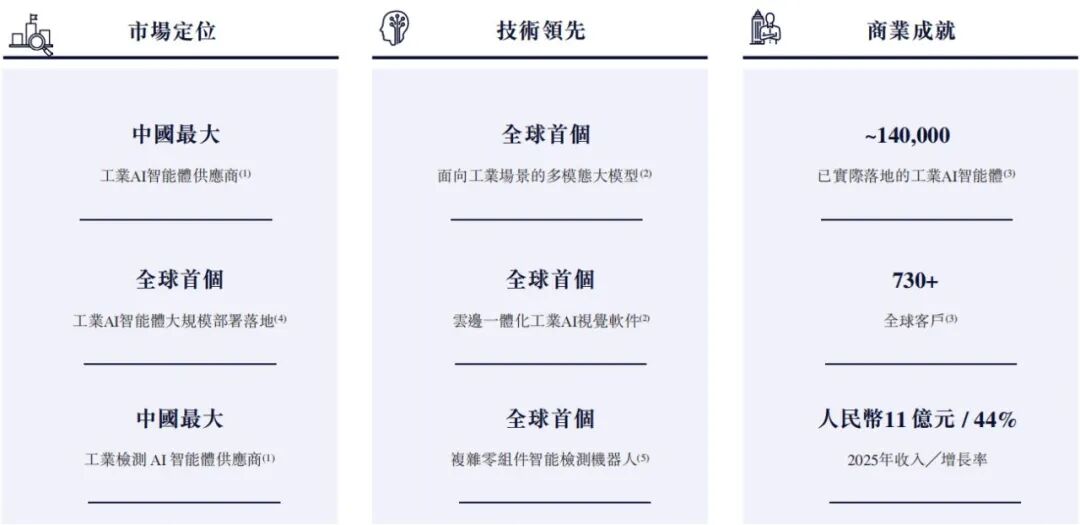 截至2025年底,其已向多个行业垂直领域交付约14万个工业AI智能体,部署于客户的核心产品及生产流程中,且帮助客户完成超170亿件产品检测。