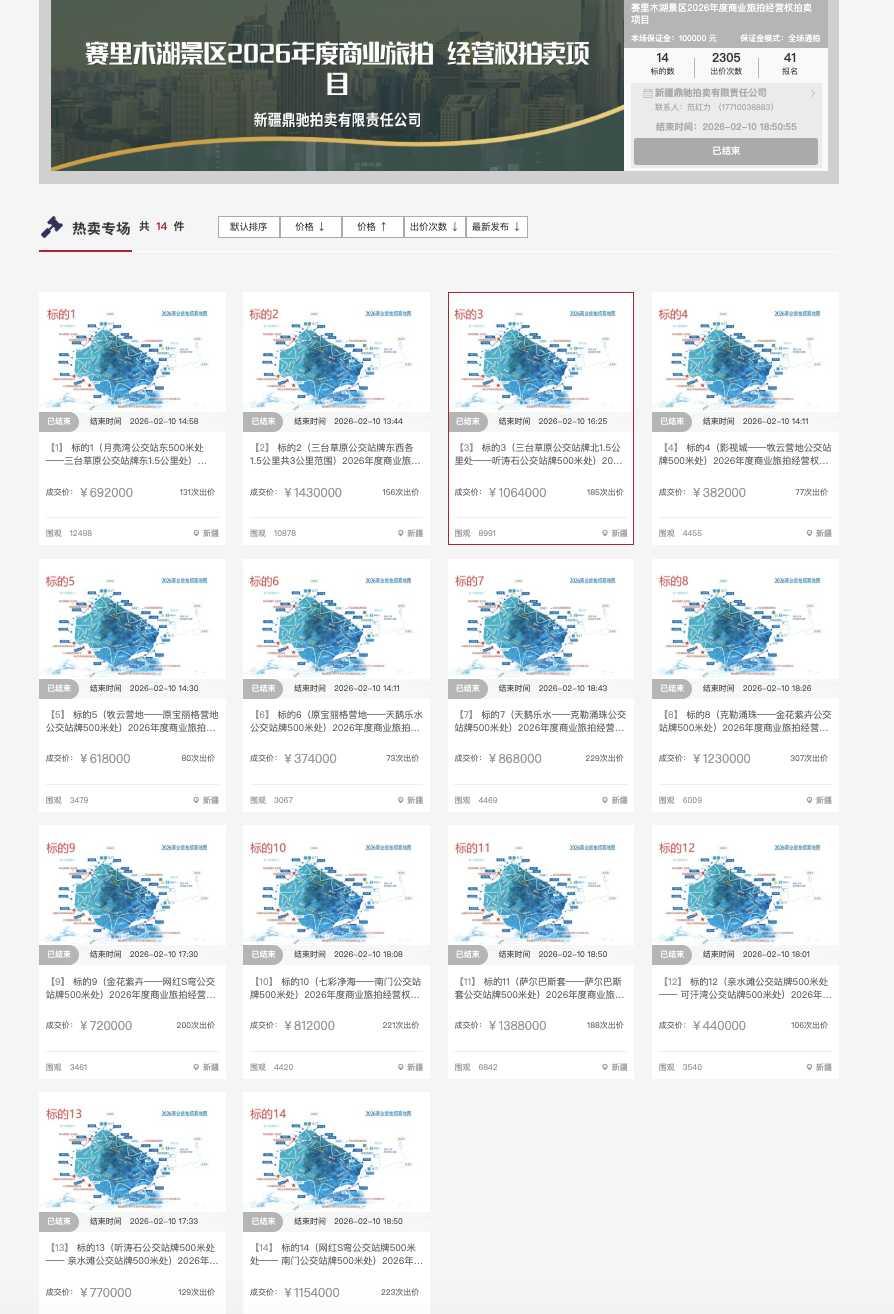 真相是:景区确实收了一笔钱,1190.36万元。但不是向游客收的,而是把环湖90公里沿岸的14个“取景框”拿出来拍卖,2305次出价后成交。
