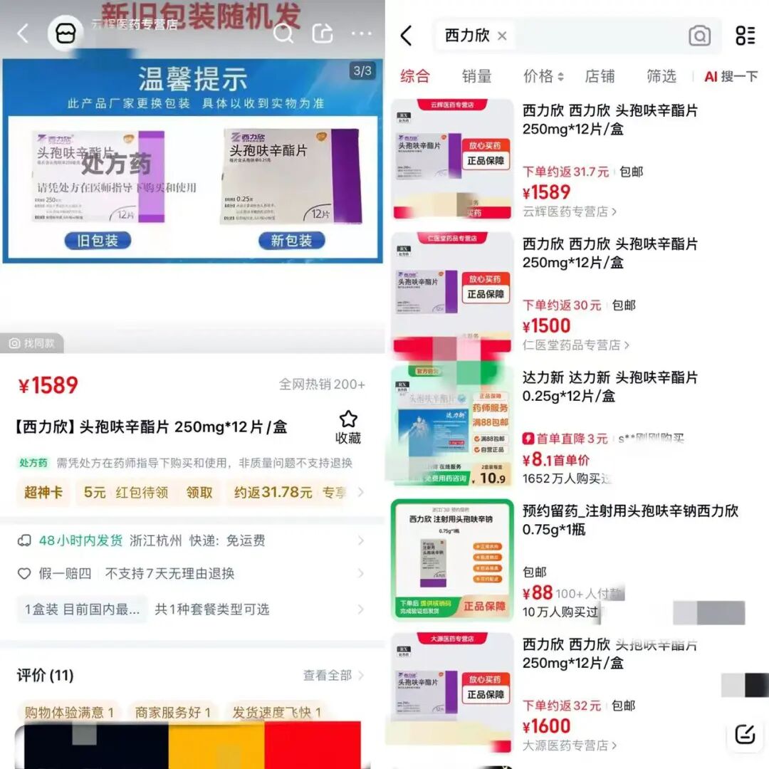 3月17日,界面新闻记者发现,原研抗生素西力欣(头孢呋辛酯)在部分电商平台上的售价达到了1589元/盒、1600元/盒。按照一盒12片估算,单片价格甚至高达130元。