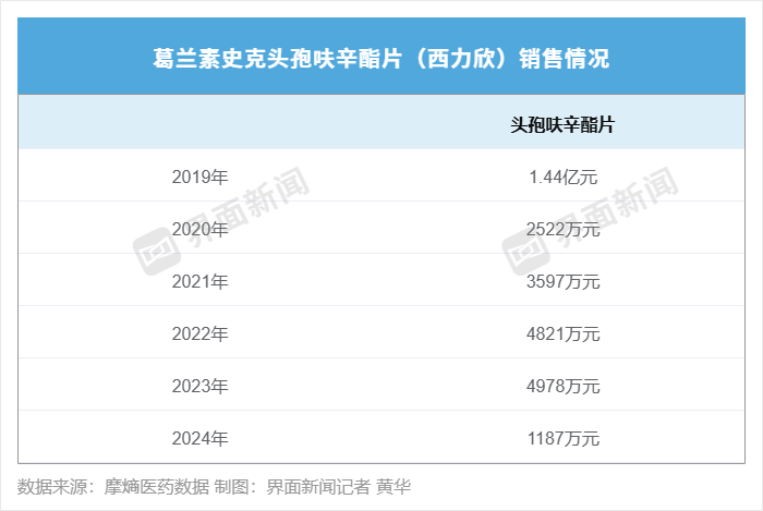 按前述数据粗略估算,在集采前,西力欣片剂于2017年实现的院内销售额在大约是1.2亿元。在2019年的国家药品集中采购中,头孢呋辛酯片中标的是三家国产厂家,没有葛兰素史克西力欣片剂。