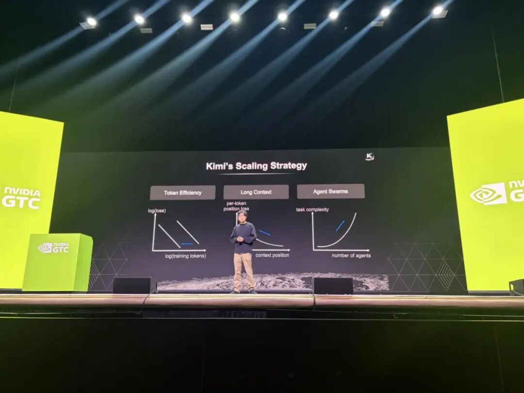 继今年 1 月底正式发布Kimi K2.5以后,杨植麟在本次演讲中首次系统性披露了该模型背后的技术路线图。他将Kimi的进化逻辑归纳为三个维度的共振:Token效率、长上下文以及智能体集群(Agent Swarms)。