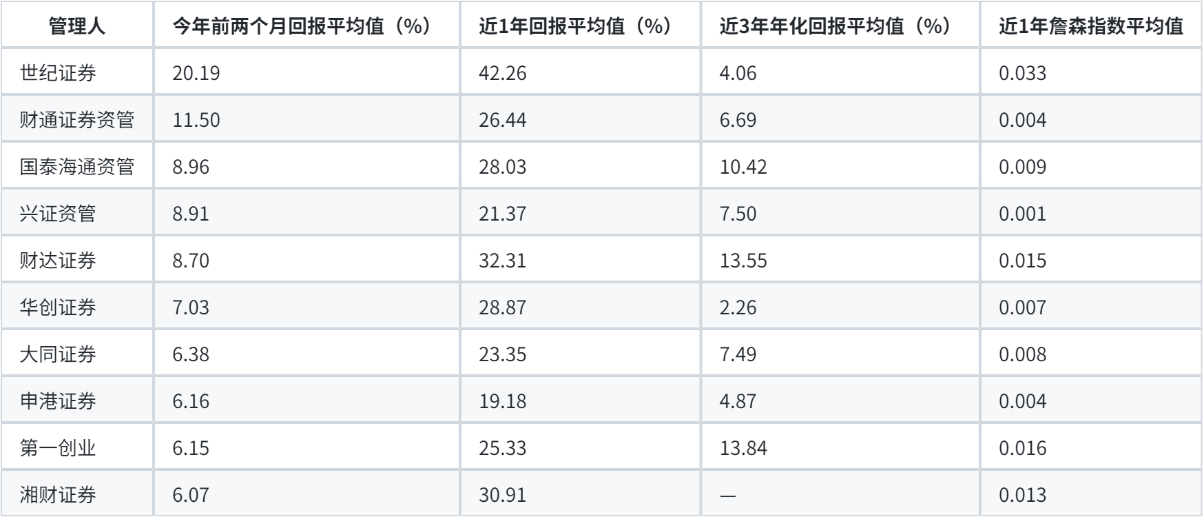 今年前两个月回报居前的主动权益类券商集合理财产品