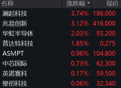 半导体板块回升,澜起科技、兆易创新涨超3%,英诺赛科、中芯国际等个股跟涨。