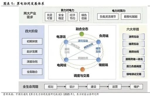 所谓算电协同,是指通过数字化技术、智能算法和通信网络,将算力基础设施与电力系统进行有机整合,实现资源动态匹配与优化配置的基建工程。这背后是“电力网”与“算力网”的深度耦合,是以全国一体化算力网与新型电力系统为底座,通过数字技术与智能调度实现算力与电力在时空布局、资源调度、市场机制上的全局优化。
