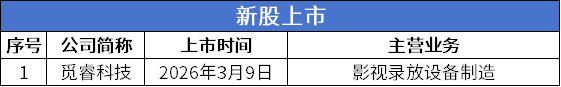 新股发行方面,3月9日-3月15日,北交所有1家公司挂牌、2家公司申购、2家公司获得注册批复、2家公司提交注册、5家公司过会,无公司申请获受理。