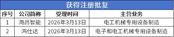 3月13日,根据北交所网站显示,海昌智能于3月9日获得发行批文。