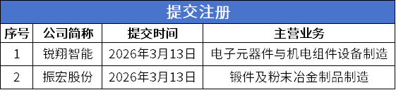 根据北交所信息,2025年6月振宏股份上市申请获北交所受理,在经历两轮问询后,2026年2月公司通过上市委员会议,并于3月13日提交注册。