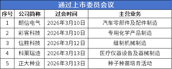 3月12日,在2026年第23次审议会议中,浙江信胜科技股份有限公司(简称:信胜科技)通过上市委员会。