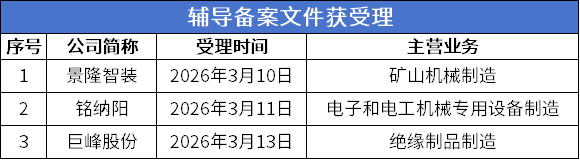 3月9日-3月15日,北交所有3家公司辅导备案文件获受理,进入辅导期。