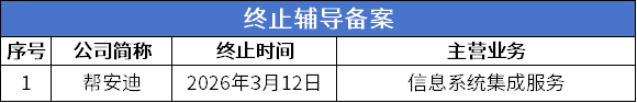 3月9日-3月15日,北交所有1家公司终止辅导。