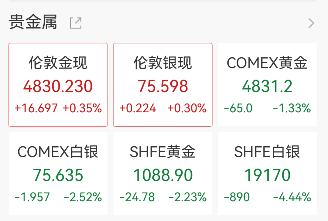 贵金属方面,黄金白银昨夜一度遭遇重挫,现货黄金创一个月新低。截至发稿,亚洲早盘现货黄金涨0.35%,现货白银涨0.3%。