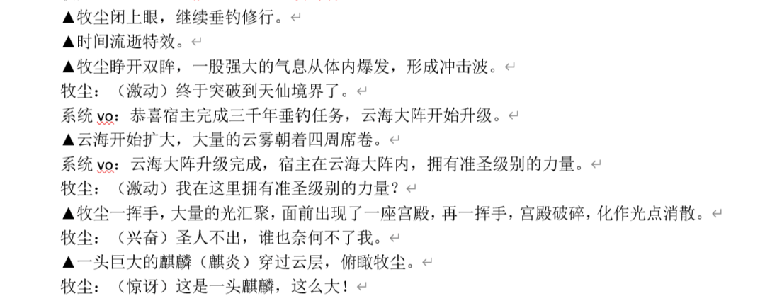 确定改编作品后,接着刘奇还要将小说按照 AI 能识别的格式改写,这一步相当于给 AI “提词”,需要用大量画面描写还原场景。