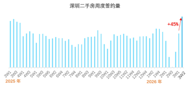 3月16日,深圳贝壳研究院数据显示,贝壳门店二手房签约量环比增长45%,创下近一年周度新高,同期新房认购量环比增长57%。贝壳认为,一二手房成交量已连续三周同步走高,充分反映出市场信心与交易活跃度正在同步回升。