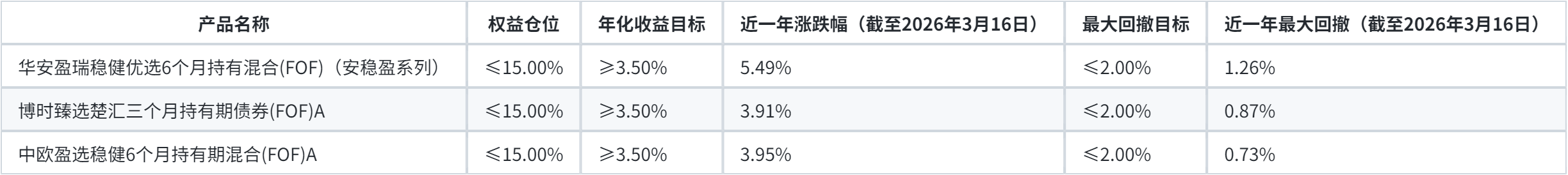 招行TREE长盈计划中的“安稳盈”推荐的部分FOF基金表现