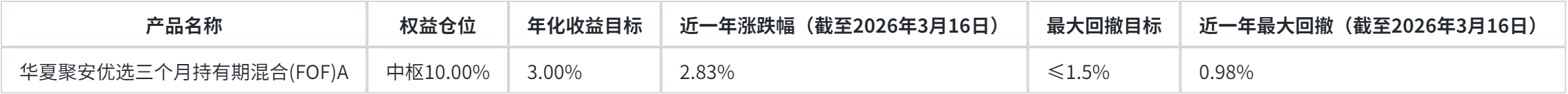 建行由于今年才推出龙盈FOF,只能参考部分代表基金的历史业绩,截至3月16日,“华夏聚安优选三个月持有期混合”近1年收益率为2.83%,略低于收益目标3%。不过该基金后续能否达标还有待观察。