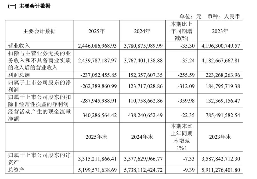 悦康药业交出了上市后首度亏损的答卷。悦康药业2025年年报显示,公司2025年实现营业收入24.46亿元,同比下降35.30%;归属于上市公司股东的净利润为-2.62亿元,同比减少312.09%。受核心产品银杏叶提取物注射液价格与销售策略调整、研发投入增加等因素影响,公司业绩由盈转亏。