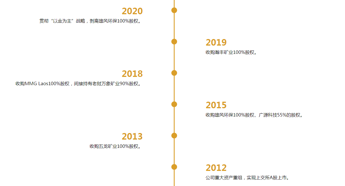 此后,公司先后完成对辽宁五龙金矿、雄风环保收购,开始涉足有色金属回收、多金属矿山等领域,不过这只是带来了公司规模的增长,盈利能力最好的业务依旧是黄金产品。