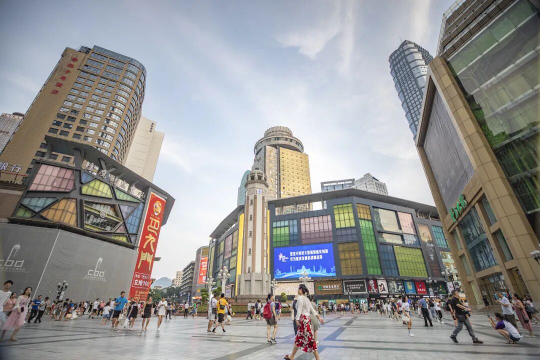 游客在重庆市渝中区解放碑步行街观光游玩 新华社发