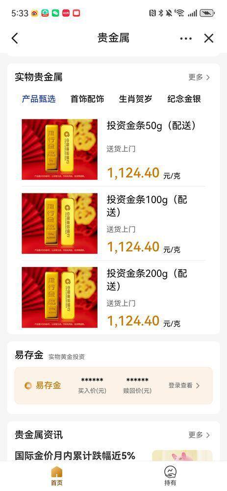 “姐妹们,银行我刚去了,金条没货,可以先积存,客户经理建议总量不超过总资产的10%,分3-5次买入就可以。”在一个社群里,有投资者交流心得称目前某国有大行的金条没有现货,连银行的人都说第一次碰到。