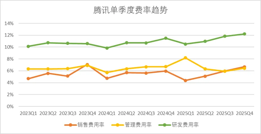 管理费率增长略有高于预期,但是结合年初腾讯AI组织架构调整,包括一些管理人士变动,也就不难理解管理费用的短期支出。