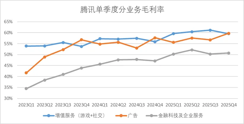 并且,腾讯四季度广告层面的效率表现不俗,营销业务的实际利润率接近60%,反超了增值服务业务。