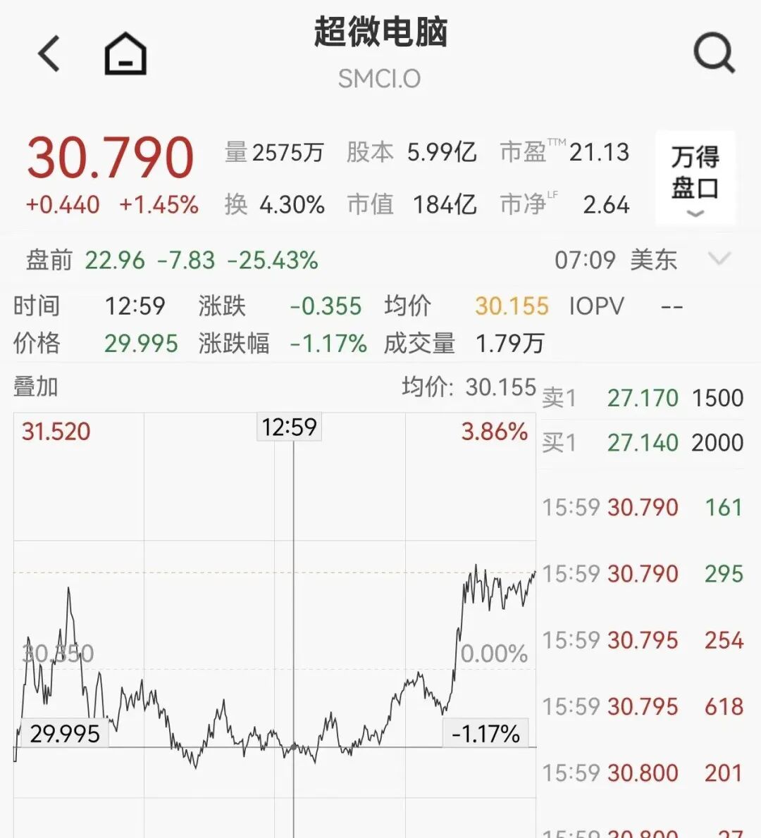 此外,超微电脑盘前跌超25%。
