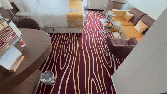 陈刚介绍,“爱达·花城号”与“爱达·魔都号”是相同船型,阳台房间数量比例一样,优化升级了房间家具布置。同时,为进一步满足多元化需求,船上还新增了多种房型供乘客选择。