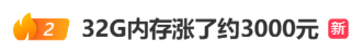 20日,话题“32G内存涨了约3000元”冲上热搜。