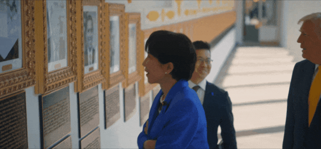 反正,视频显示,经过白宫“总统星光大道”走廊时,一看到特朗普的照片,高市两眼放光,伸出双臂,张大嘴巴。 崇拜、爱慕、倾倒,扑面而来。 但看到拜登的照片(实际不是拜登,特朗普特意放了一张“自动签名机”),完全相反。高市忍不住捂嘴,吃吃而笑。
