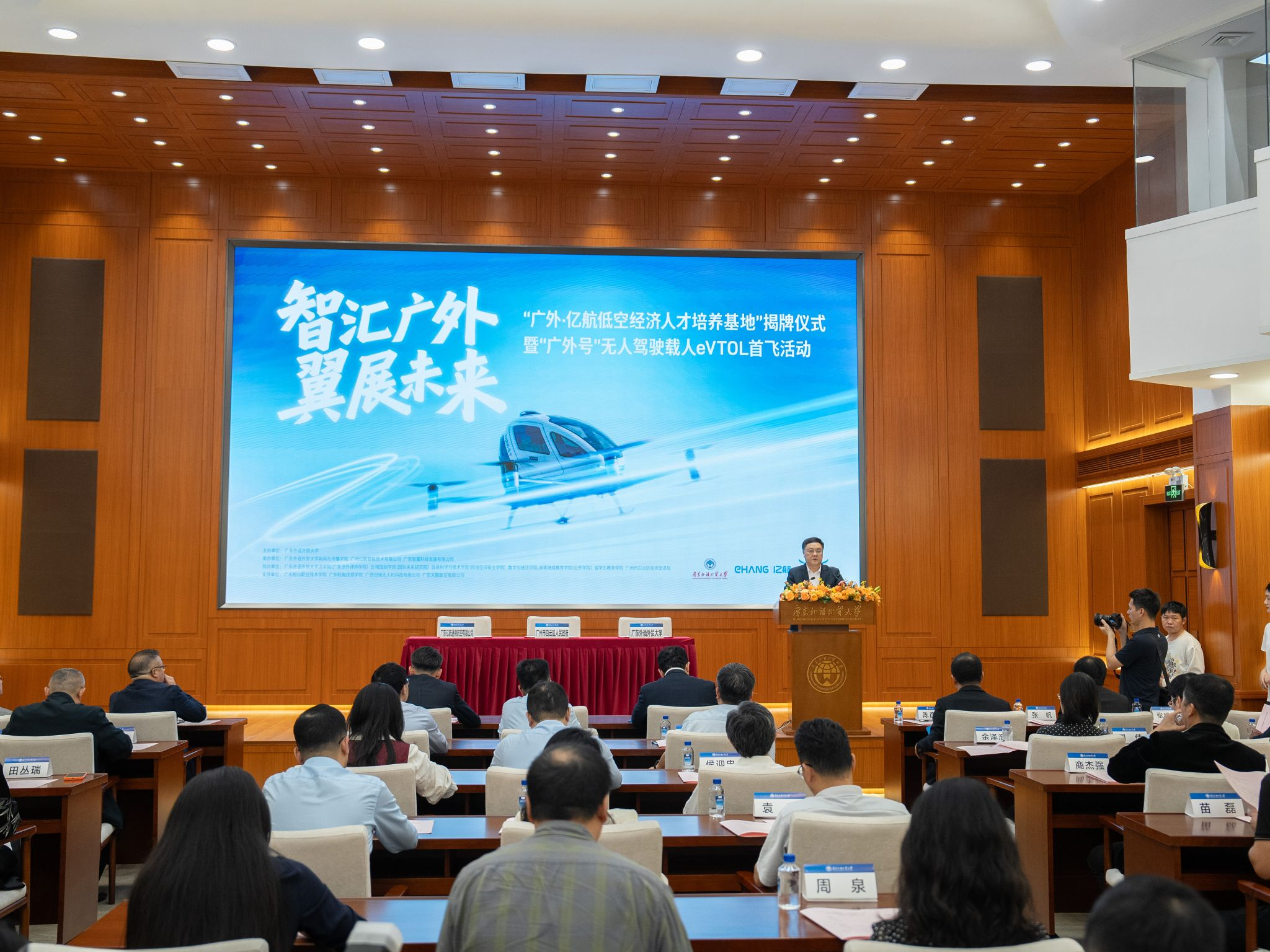 3月20日,广州市白云区人民政府、广东外语外贸大学与广州亿航智能技术有限公司战略合作签约仪式、“广外·亿航低空经济人才培养基地”揭牌仪式及“广外号”无人驾驶载人eVTOL首飞活动,在广外白云山校区举行,地校企三方将协同探索低空经济产教融合新路径。