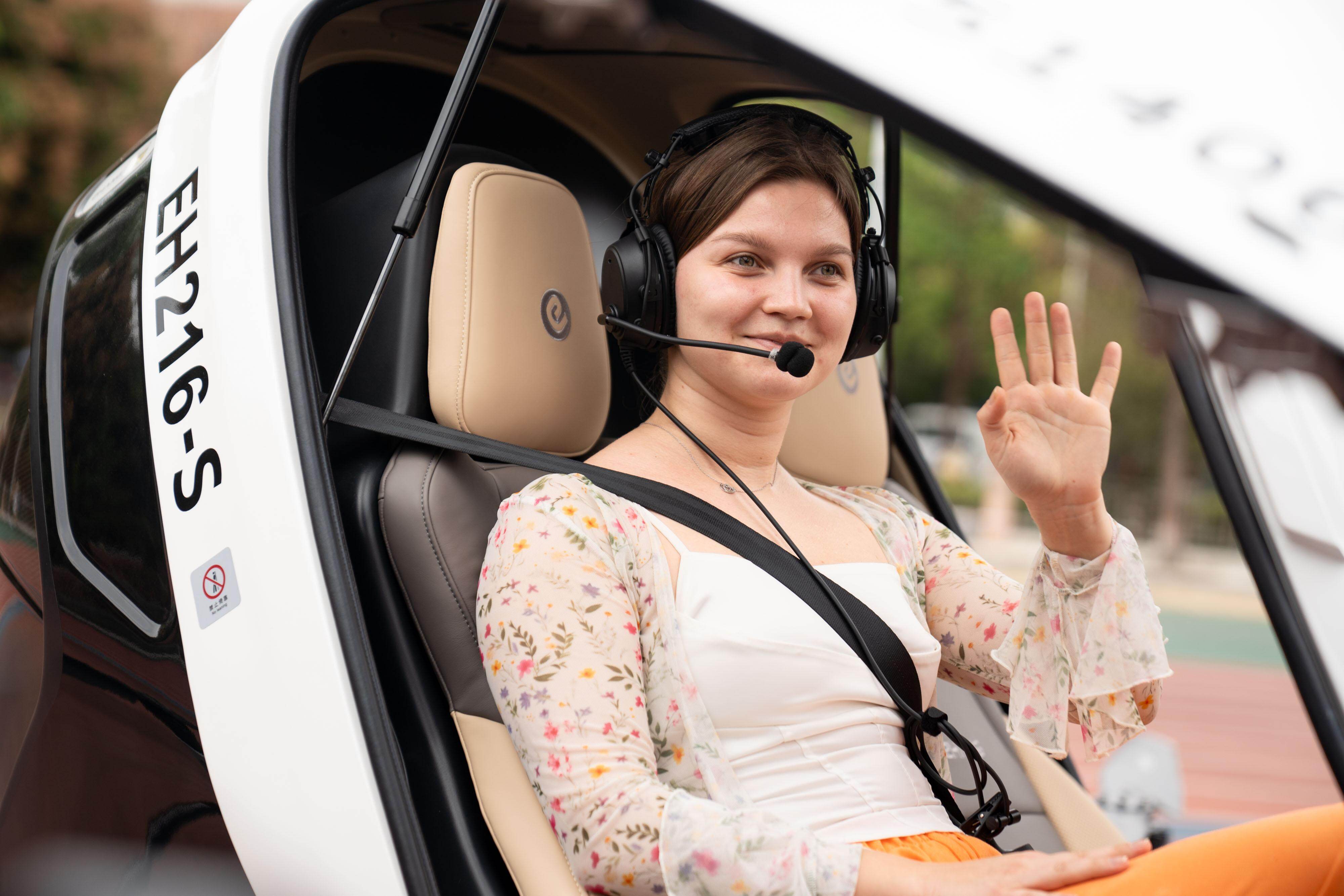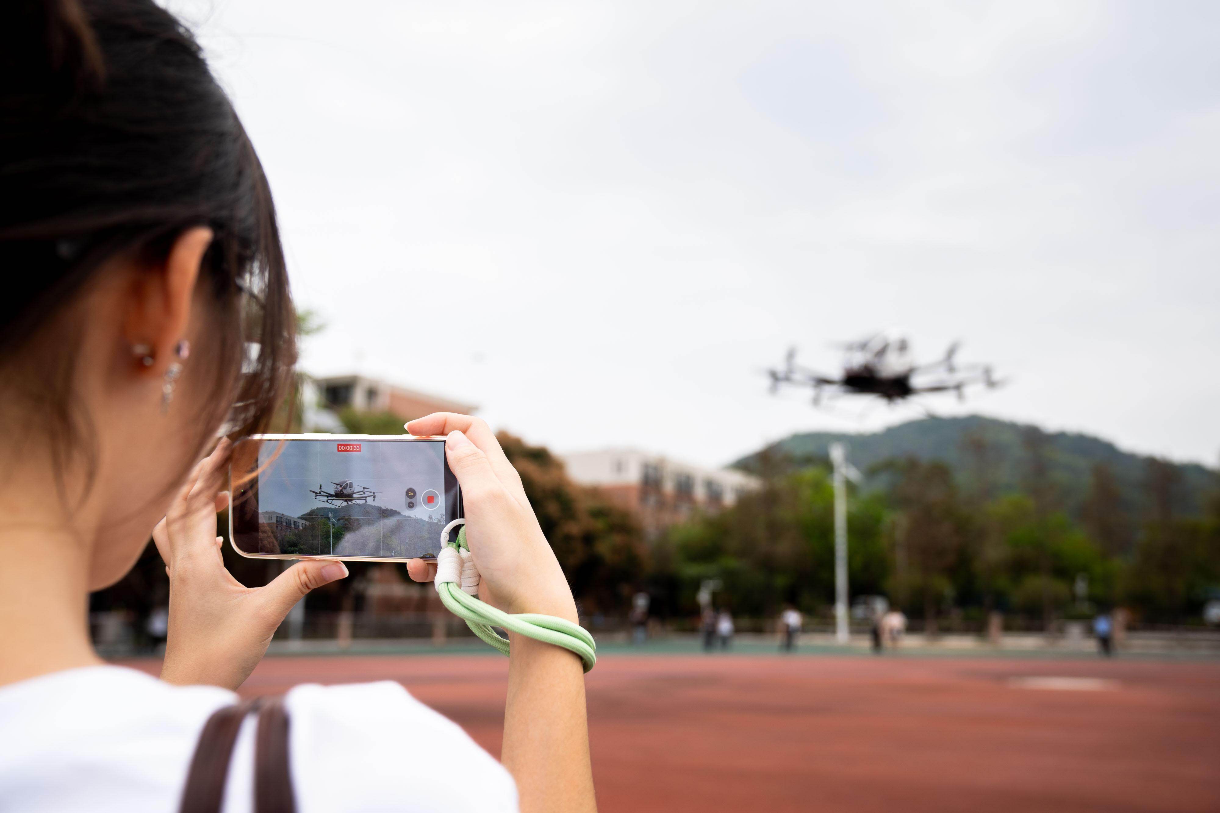 随着飞行器缓缓升空,悬停、巡航、降落一气呵成,流畅稳定的飞行动作将现场气氛推向高潮,“广外号”无人驾驶载人eVTOL首飞活动点燃了全场。