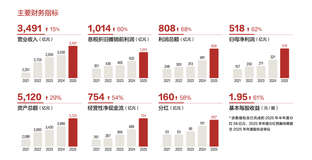 同时,公司拟每10股派发现金红利3.8元,拟派发现金红利101.04亿元,结合此前已完成的2025年中期分红58.5亿元,分红规模将达159.5亿元。