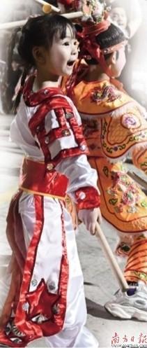 以互联网为代表的新媒介为新大众文艺的兴起提供了强大动力。图为广东汕头小女孩庄恩琪与英歌队员互动共舞的视频在互联网上受人瞩目。新华社 发