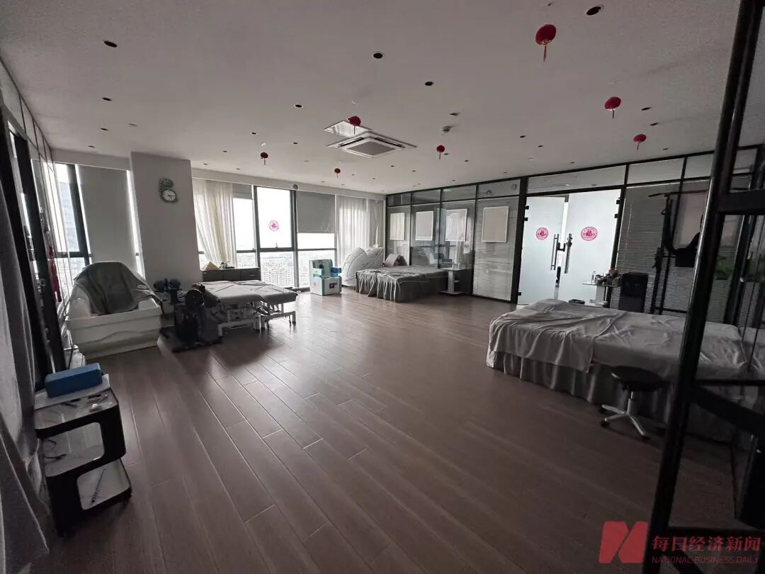 记者也探访了总部的所谓“治疗区”,这部分由一块面积较大的开放区域与几个独立房间共同组成。开放区域内摆放着数张铺有床单的床位,以及多台外观各异的设备,整体布置类似理疗、美容店。其中,靠窗角落摆放着一台造型醒目的设备,外观形似按摩椅;另一款座椅设备的面板上则印有“美学热疗椅”字样。场地中央较为空旷,几张床位和器械分散陈列,显得有些杂乱。除此之外,该“治疗区”内部还设置有两三个单独房间,房门玻璃上标有“调理室A”“调理室B”等字样,房间内各摆放着两张床位。