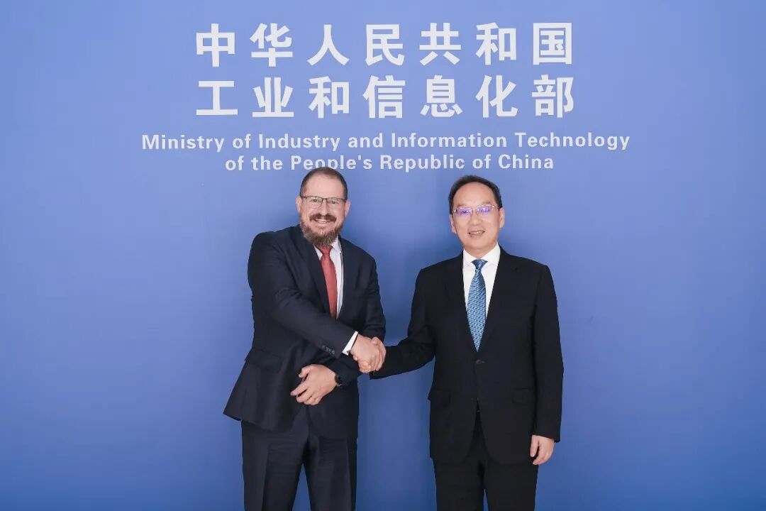 3月23日,工业和信息化部副部长辛国斌在北京会见福德士河集团董事长 安德鲁·福瑞斯特 。
