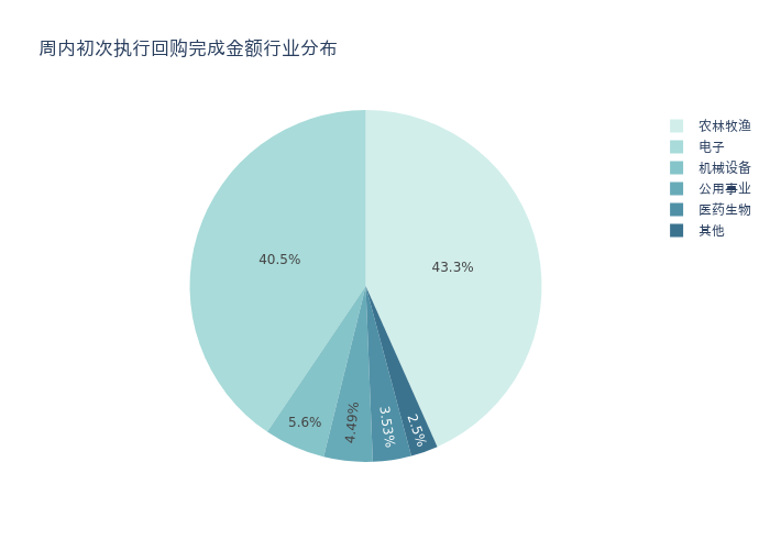 按照初次执行金额所在不同行业分布,金额最高的3个行业分别为:农林牧渔、电子、机械设备,详情见下图: