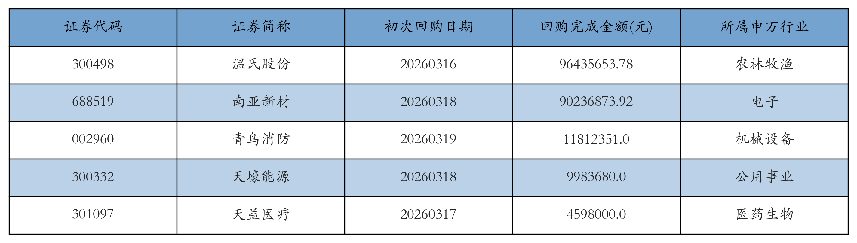 五、上市公司回购金额