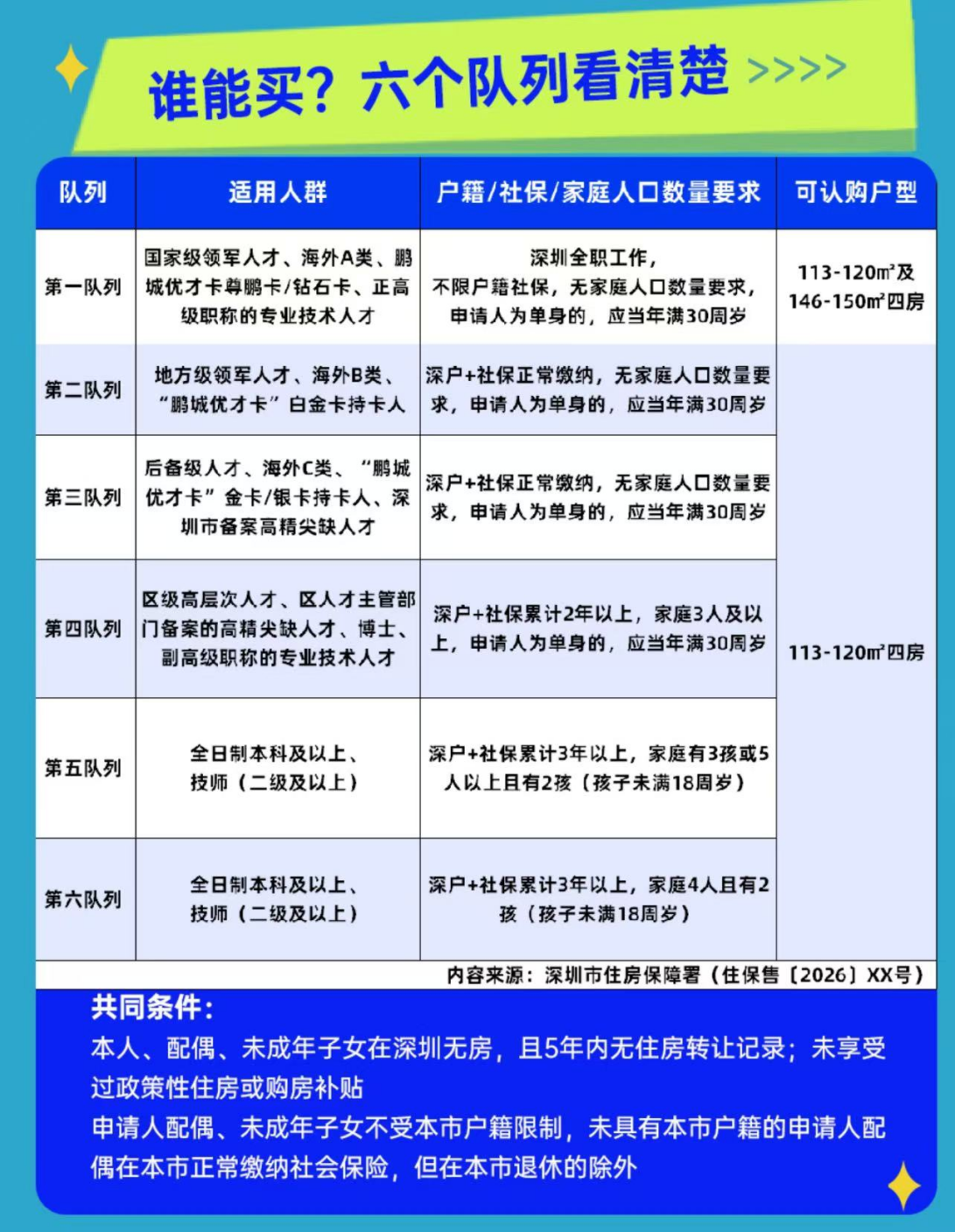 前四个队列,是国家级/地方级领军人才、高层次专家等“顶尖精英”。而从第五队列开始,准入门槛迎来放宽:只要你是全日制本科及以上学历,家有四口人以上,且有两名未成年子女,即可与前面的“大咖”们,站在同一跑道,共同申购同款四房户型!